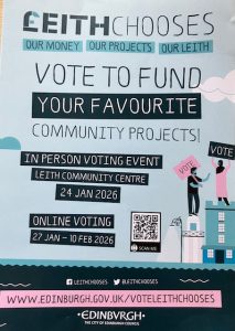 Wow! This year’s Leith Chooses has attracted a record number of applicants! The ‘Gallery’ is now open and you can see details of all the proposed projects here, in advance of voting in January 2026.